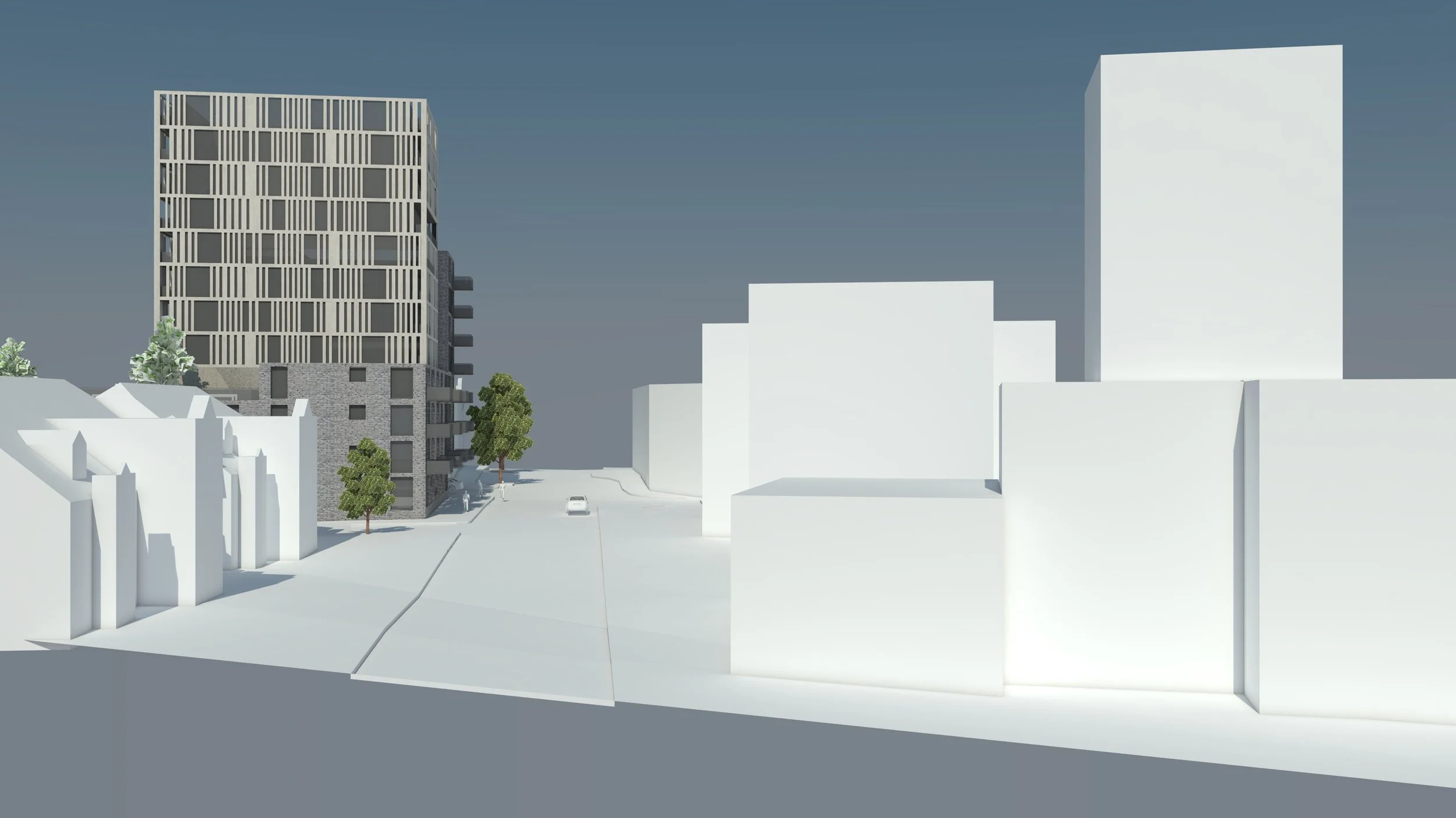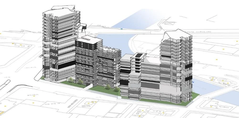 Proposals outlined a high-rise mixed-use scheme with a split 18 storey tower & adjoining 6-9 storey community blocks contributing to the wider regeneration of Croydon. Feasibility options high-light proposed building use - external appearance of the scheme has yet to be developed.